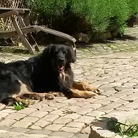 Cyrano ist - genau wie die Hunde vor ihm - ein Hovawart. Der Name ist Programm. Ein Hovawart (Hofwart) hat gerne ein Terrain, überdas er wachen und "herrschen" kann.